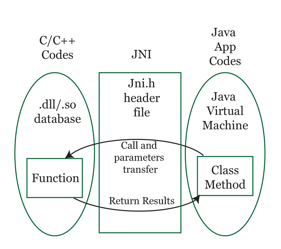 네이티브 메서드 라이브러리란 C,C++,어셈블리와 같은 언어로 작성된 메서드를 재사용할 수 있게 모아서 제공하는 것을 말하고, 이 라이브러리를 자바 애플리케이션 내에서 사용할 수 있게 인터페이스를 제공하는 것이 네이티브 메서드 인터페이스 (JNI)이다