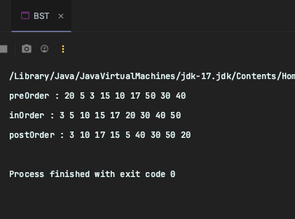 Binary Searh Tree의 전위,중위,후위 순회는 자바 언어로 다음과 같이 구현할 수 있습니다.