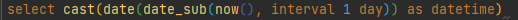 cast(date(date_sub(now(), interval 1 day)) as datetime)