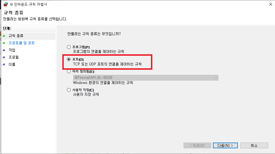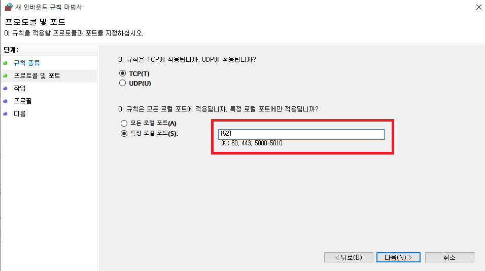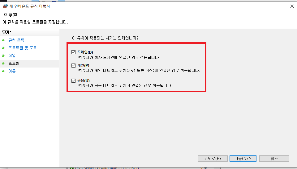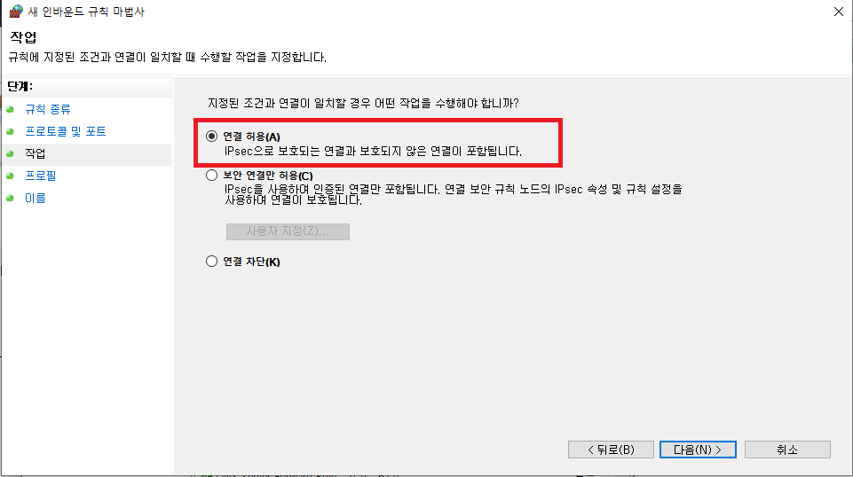 4.4 상황에 맞게 연결 허용 조건을 선택한다.