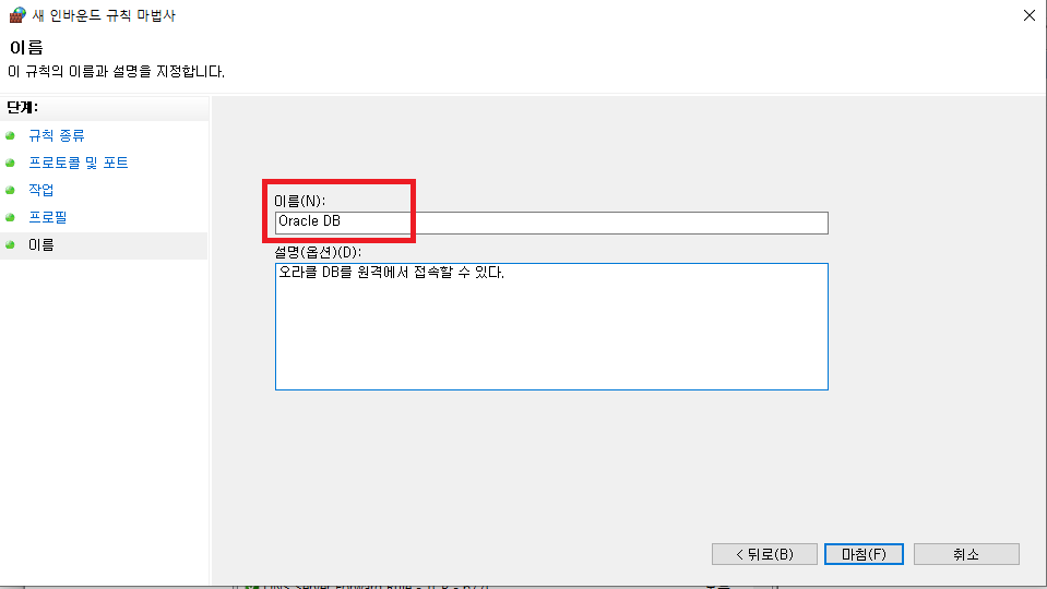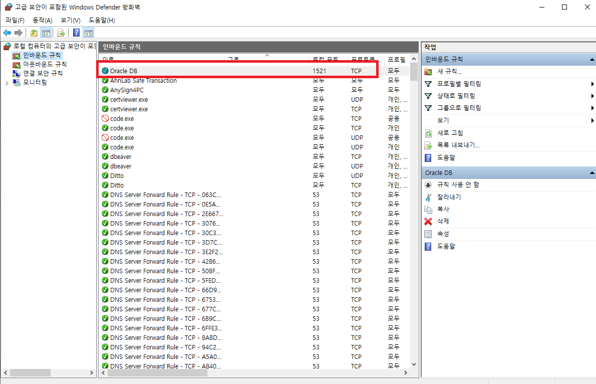 4.7. 설정을 마치면 아래와 같이 Oracle DB에 해당하는 인바운드 규칙이 생성된다.!!