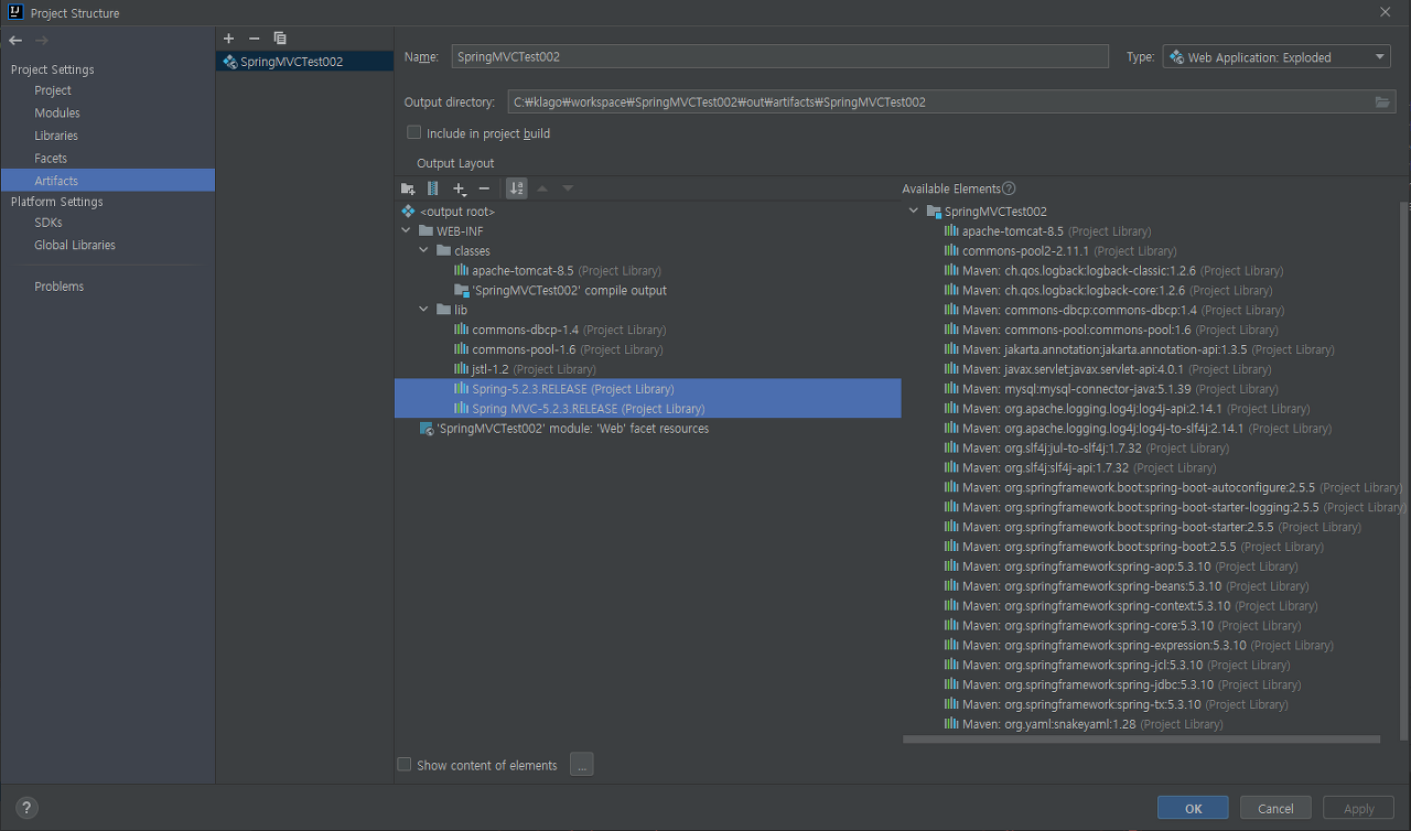 - Spring과 SpringMVC 라이브러리들이 /lib 경로 아래 있음