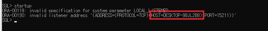 오라클이 알고있는 호스트 이름과 내 PC 디바이스명 (컴퓨터 이름)이 달라서 발생한 문제였다.