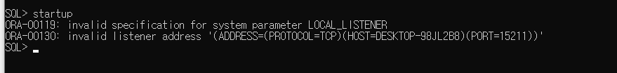 오라클 기동시 아래와 같은 에러가 발생했다.