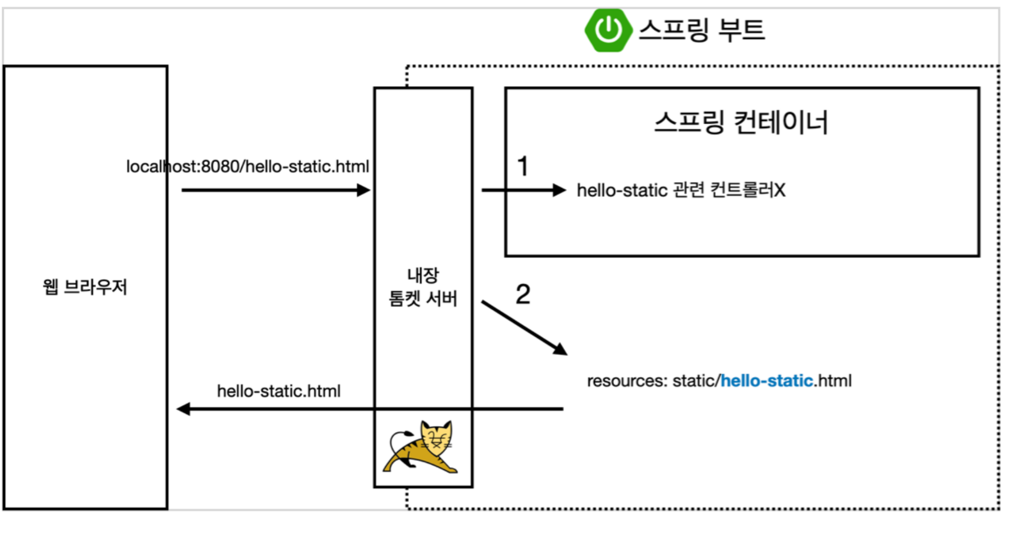2. spring boot의 내장 톰캣 서버에서는 먼저 hello-static이라는 컨트롤러가 있는지 확인한다.