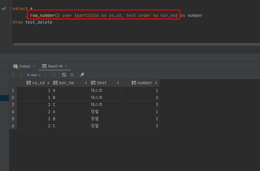 row_number() over ( partition by 컬럼) : 컬럼 기준으로 그룹핑 한 뒤 그룹 별로 번호를 매긴다.